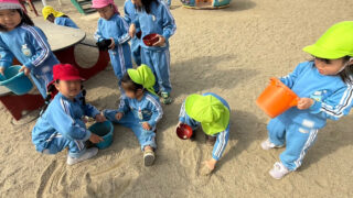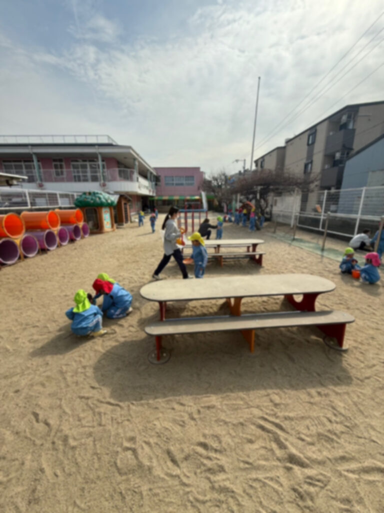 子どもたちには園庭の石拾いやゴミ拾いをしてもらいました!