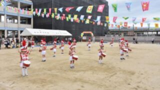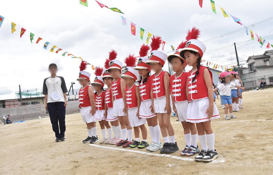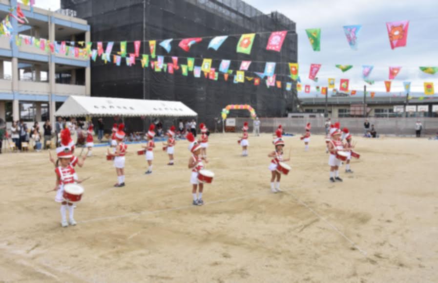 そして年長組の鼓隊では、素敵な衣裳で身を包み、練習の成果を立派に披露してくれました。5月から始まった本当に長い長い練習期間を経て、強く逞しく成長した年長組の子どもたち。見ている誰もが感動する、素晴らしい鼓隊でした。
