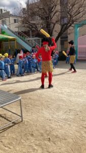 年長組のお遊戯『森河内戦隊✩ばらレンジャー出動!』ではそれぞれのイニシャルが入った素敵な衣裳を着た子どもたちが登場!力強いダンスにマントが風でなびいてとっても素敵でした。